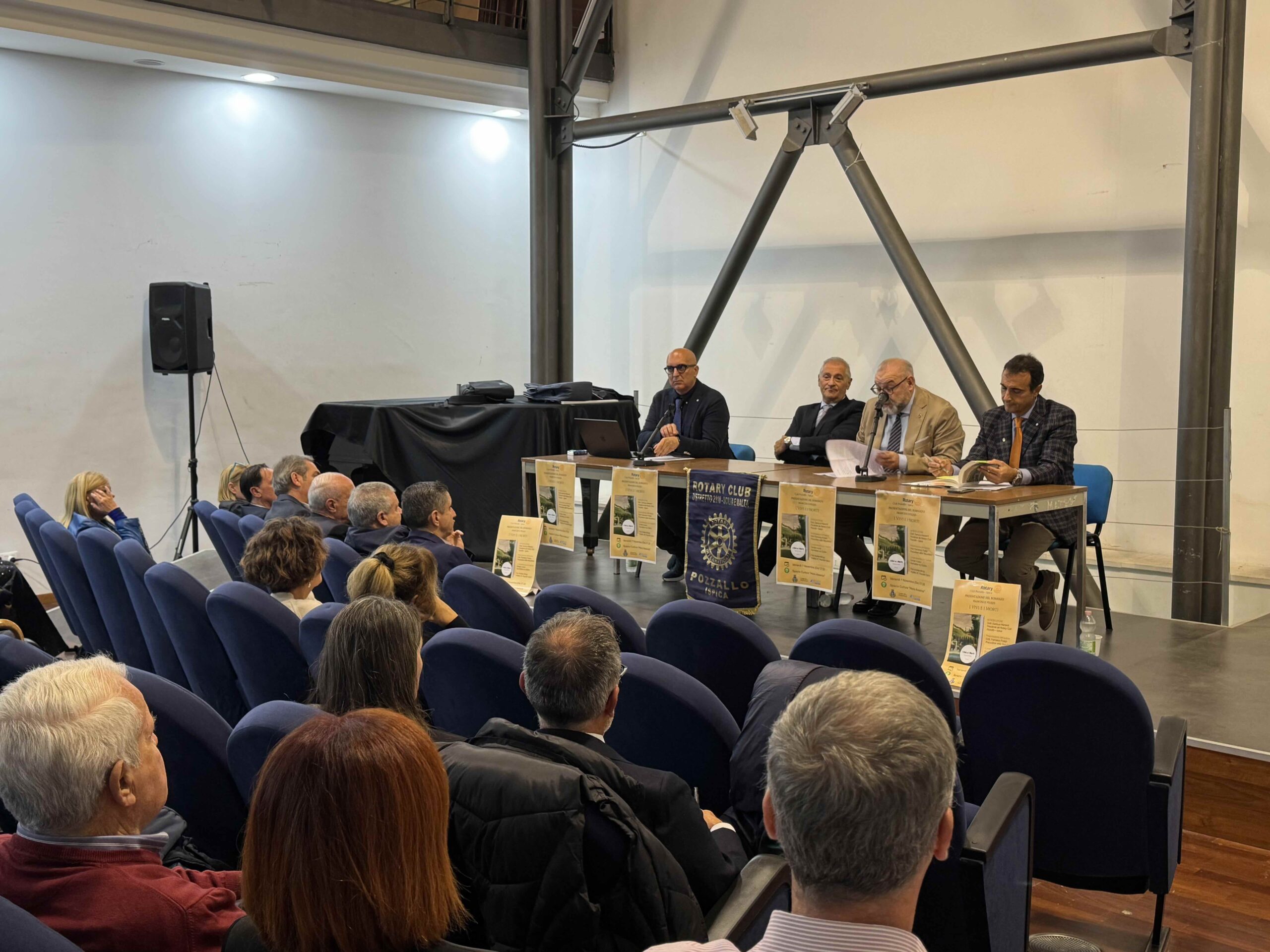 Pozzallo, 11 novembre 2025 – Lo spazio cultura Meno Assenza di Pozzallo ha ospitato la presentazione del nuovo romanzo “I vivi e i morti”, opera di Francesco Puleio, procuratore della Repubblica del Tribunale di Ragusa. L’evento, promosso dal Rotary Club Pozzallo Ispica e introdotto dal presidente Gianluca Manenti, ha visto la partecipazione di Giorgio Liuzzo, responsabile provinciale del quotidiano “La Sicilia”, e Andrea Mingo, prefetto del Rotary Club Pozzallo Ispica, che hanno conversato con l’autore in un dibattito intenso e coinvolgente.