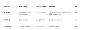 Toshi.bet vs Fanduels e Draftkings su varie considerazioni chiave per gli scommettitori della NFL