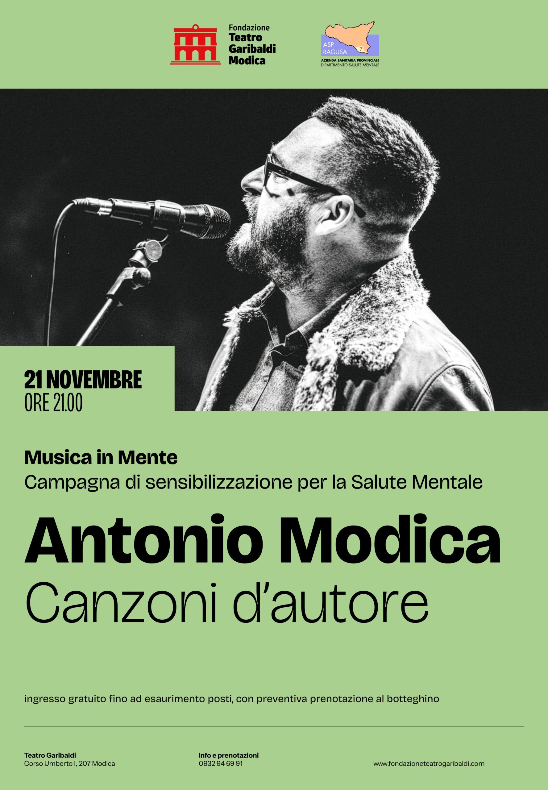 Modica, 18 novembre 2025 – Il Dipartimento di Salute Mentale, diretto dal dottor Pino Morando, e l’Unità Operativa Complessa di Psichiatria di Modica, responsabile il dottor Giorgio Garofalo, in linea con la propria mission di apertura al territorio, hanno avviato una campagna di sensibilizzazione e informazione sui servizi di Salute Mentale. Il percorso prenderà il via con un primo evento: il concerto “Canzoni d’autore” di Antonio Modica, in programma venerdì 21 novembre alle ore 21 al Teatro Garibaldi di Modica.