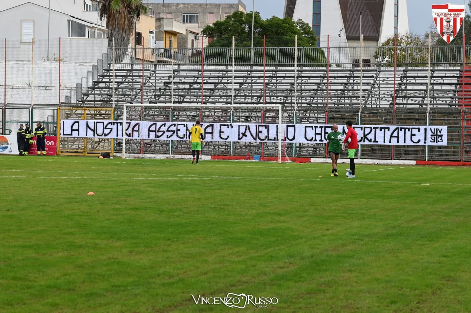 La protesta è stata resa visibile a tutti attraverso un chiaro striscione esposto sulla rete del rettangolo di gioco. Il messaggio, presumibilmente critico nei confronti delle scelte societarie, della gestione tecnica o dei risultati sportivi, ha trasformato lo stadio comunale, già privo del calore della tifoseria più accesa, in una cornice silenziosa e malinconica.