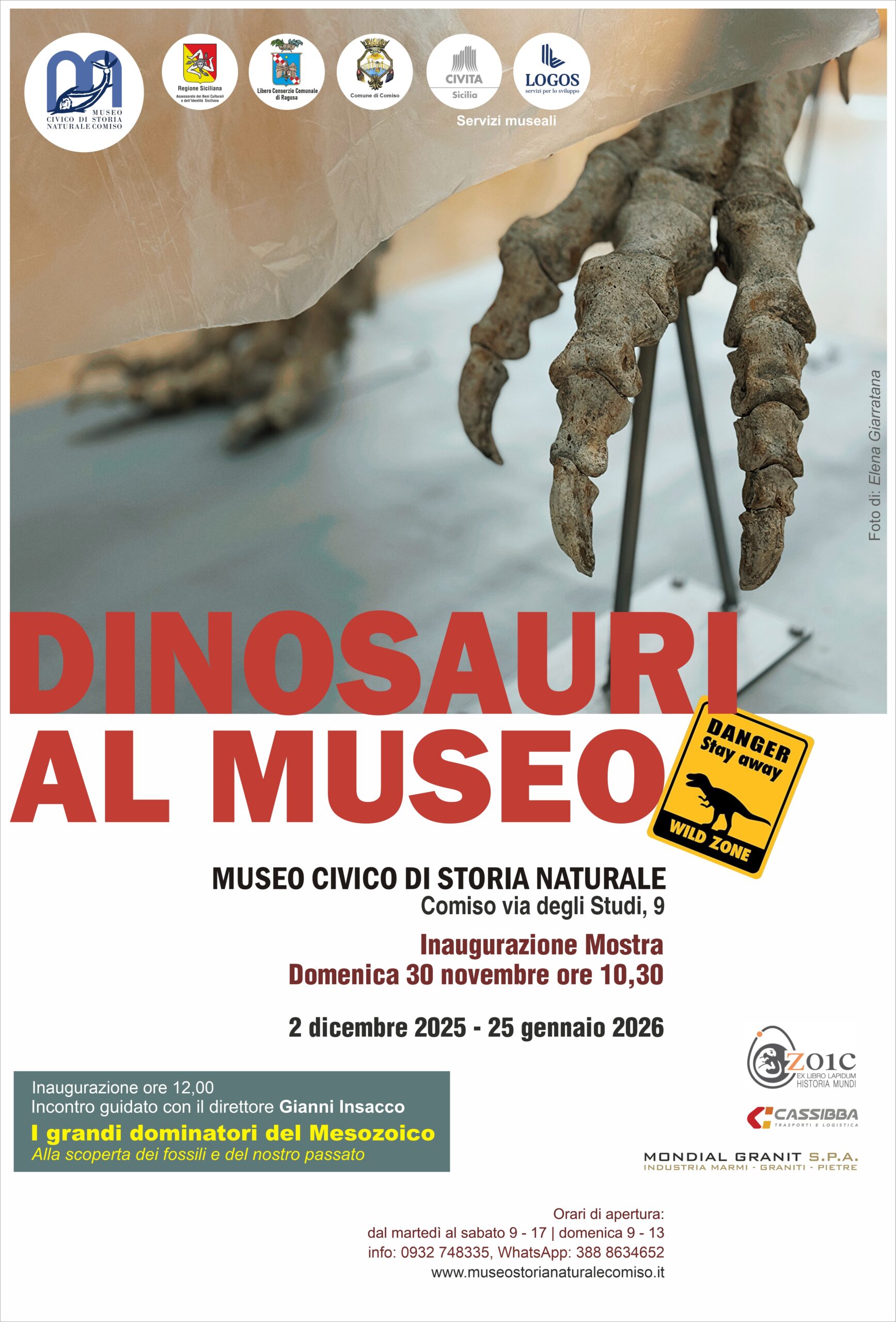 Comiso, 26 novembre 2025 – Cosa succede in città? Il 30 novembre ci saranno “Dinosauri al Museo”. “I resti del più grande tirannosauride, unico esemplare esposto in Italia, saranno in mostra a Comiso, nel più grande museo del meridione”. L’annuncio del sindaco Maria Rita Schembari, e del curatore scientifico Gianni Insacco