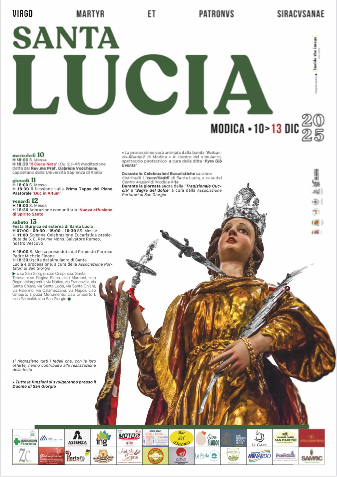 Modica, 09 dicembre 2025 – La Parrocchia di San Giorgio si prepara a vivere con intensità spirituale il triduo in onore di Santa Lucia, nel segno dell’ascolto della Parola, della contemplazione e della missione, in sintonia con il nuovo Piano Pastorale Diocesano “Duc in Altum” indicato dal Vescovo di Noto.