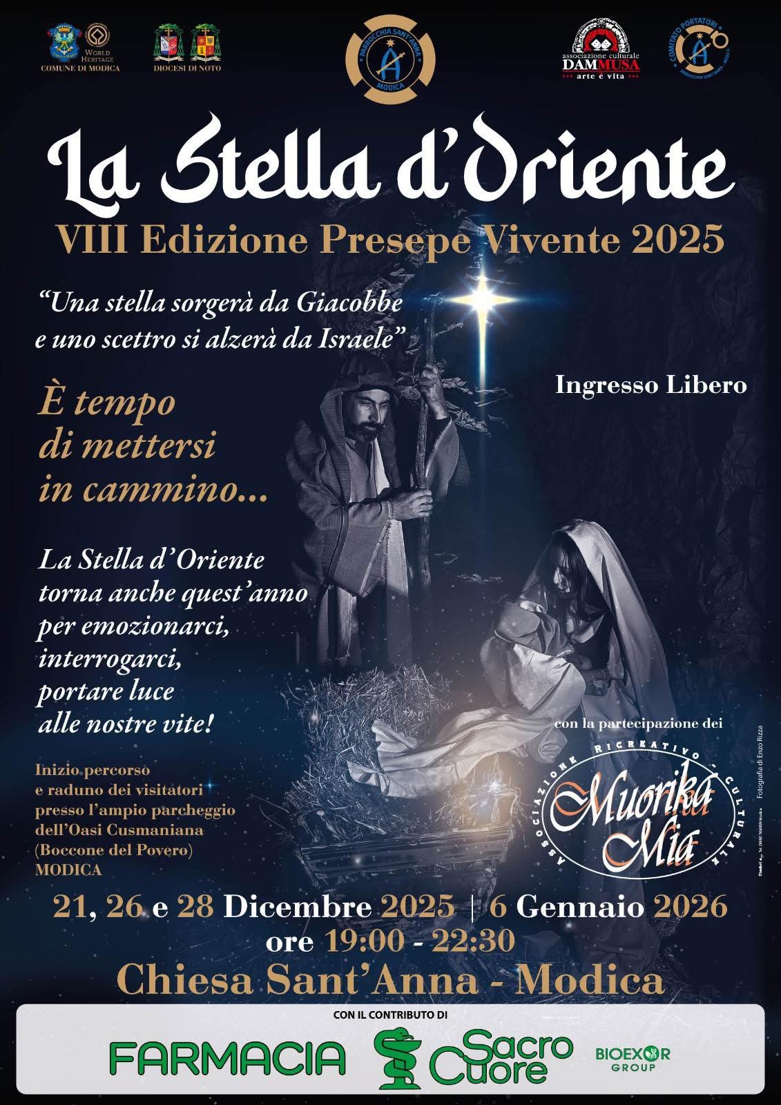 MODICA, 10 Dicembre 2025 – È quasi tutto pronto per l’VIII Edizione del Presepe Vivente organizzato dalla Parrocchia di Sant’Anna a Modica. Come da otto anni a questa parte, la comunità parrocchiale si prepara a offrire un “regalo” ai modicani e ai visitatori, mettendo in scena le suggestive immagini della Natività.