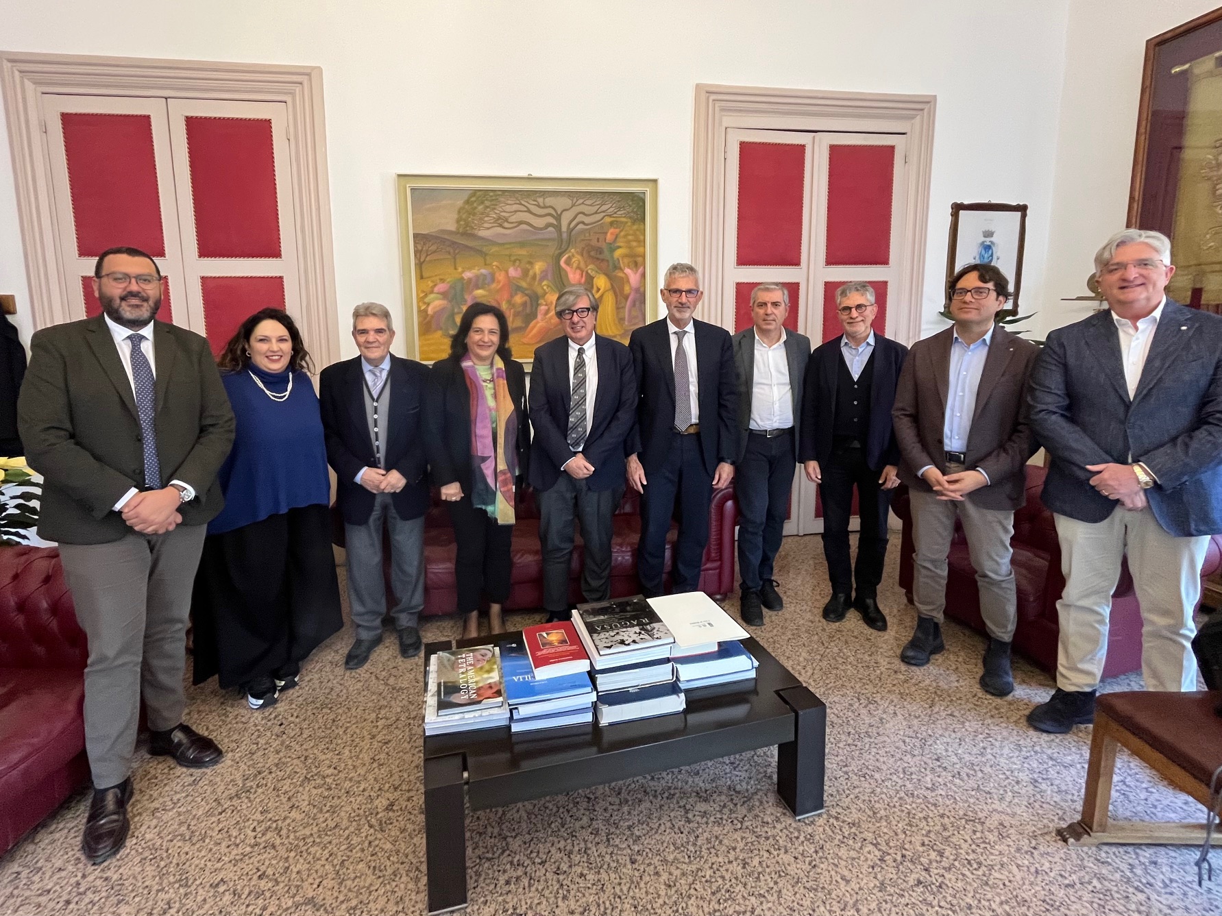 Ragusa, 10 dicembre 2025 – Il Sindaco di Ragusa Peppe Cassì ha ricevuto la visita del nuovo Magnifico Rettore dell’Università di Catania, Enrico Foti, del neo direttore del nostro Consorzio Universitario, Mimmo Arezzo, e del delegato ai rapporti con il territorio ragusano, Santo Burgio.