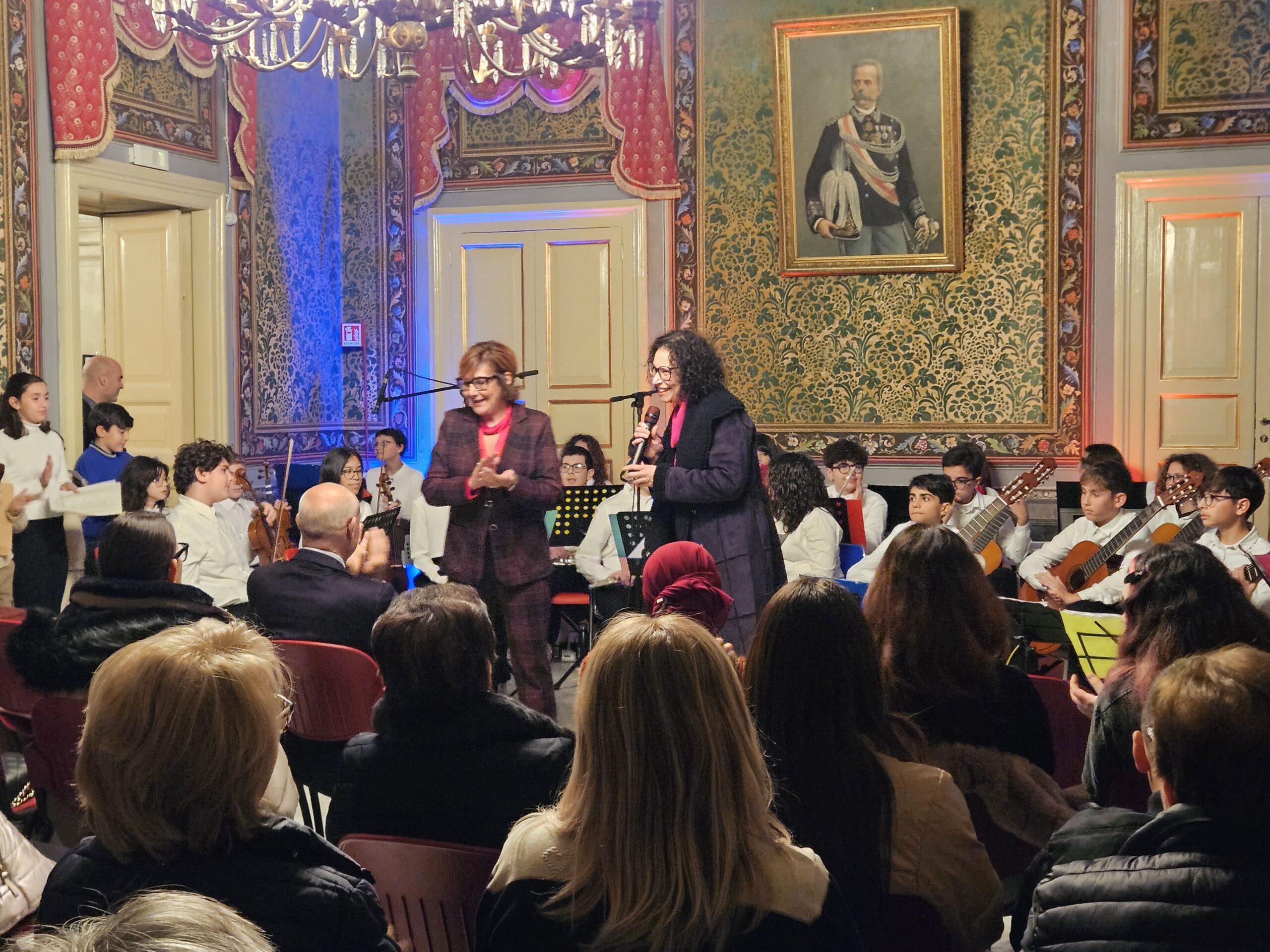Nella splendida cornice della sala grande del Palazzo Busacca, di proprietà della Opera Pia Di Lorenzo Busacca, Assap, le ragazze e i ragazzi della “Vittorini’s crew” dell’I.C. E. Vittorini di Scicli, hanno intrattenuto i numerosi spettatori con musiche e canti di natale, classiche e moderne, anche con la splendida voce della talentuosa Aurora Kola. Hanno condotto con piglio i giovanissimi presentatori Chiara Ferro, Antonio Bonaglini e Diletta Venuti. Hanno letto poesie sul tema della pace e del Natale Edoardo Manenti e Diletta Venuti.