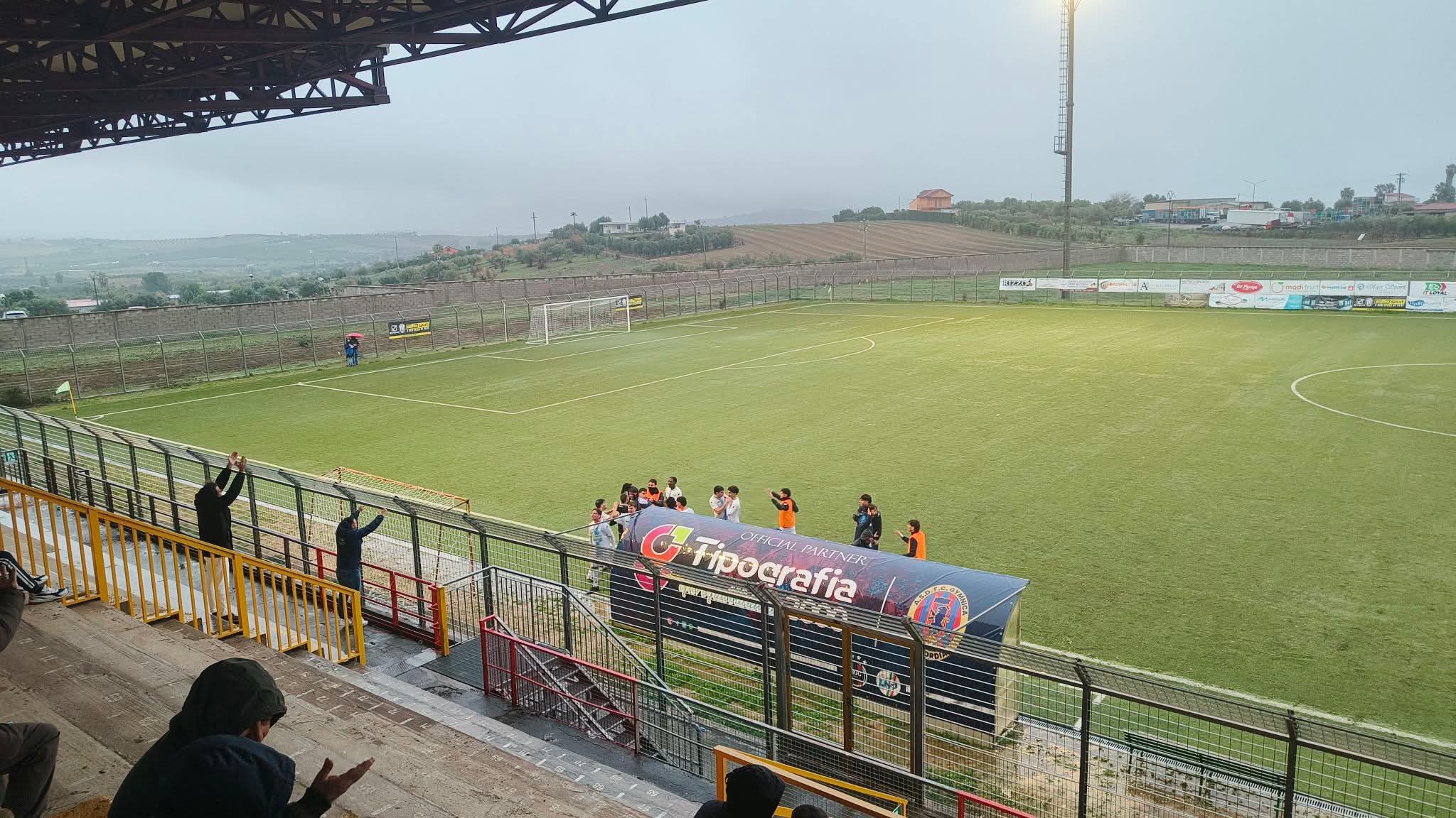 La grande occasione per i locali arrivava al 23′ con un penalty assegnatogli per un tocco di mano in area di rigore, dal dischetto si presentava Bonaccorsi, ma capitan Mangione era pronto e respingeva.