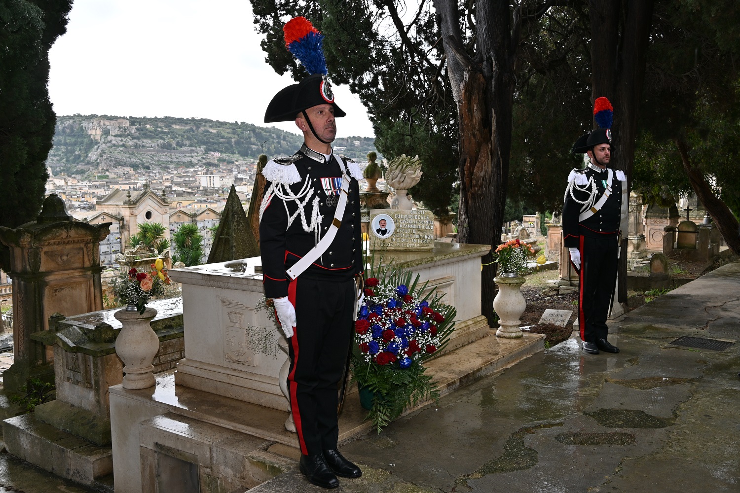 A seguire, il Comandante Provinciale dei Carabinieri e il Sindaco si sono recati presso il cimitero di Scicli ove hanno deposto un omaggio floreale sulla tomba dell’Appuntato Vincenzo Garofalo.