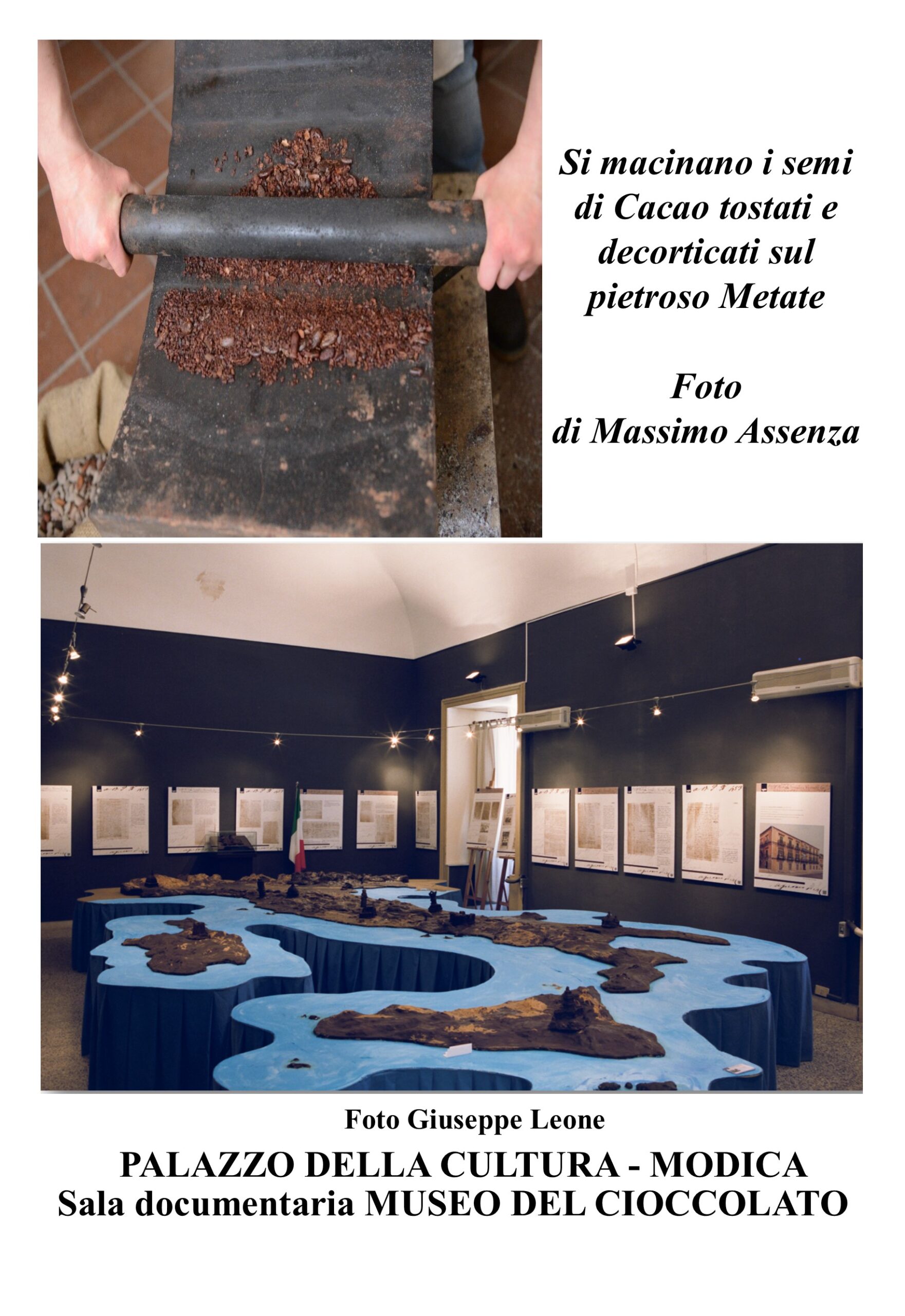 Il viaggio, suggerito visivamente dall’altorilievo ITALIA in cioccolato di Modica, connette luoghi e fabbriche dove abili maestri del gusto e del buono amalgamavano il cibo degli dei per i palati di elitarie gerarchie sociali, le sole che nella Modica settecentesca animavano il rito della cioccolata calda.
