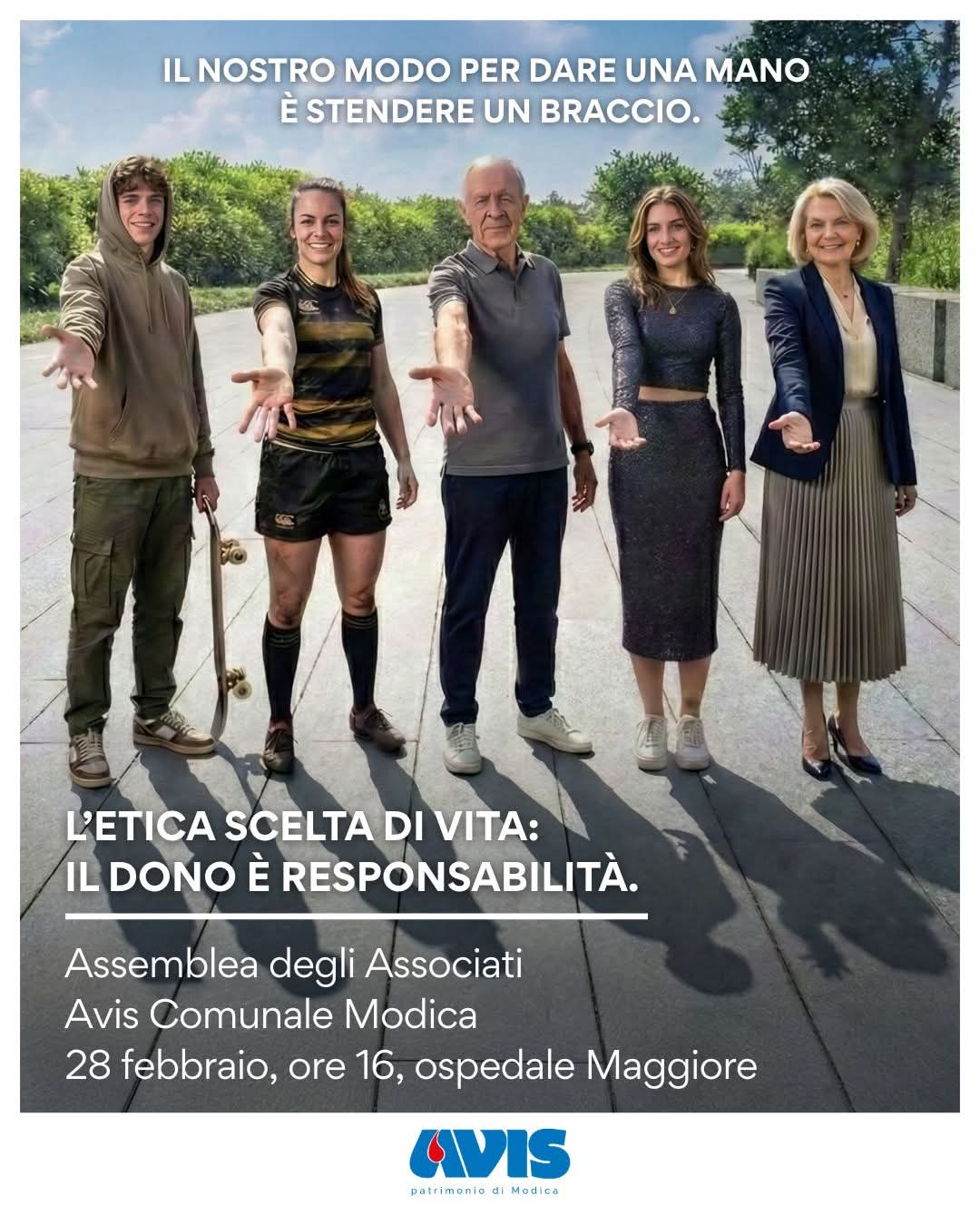 Modica, 26 febbraio 2026 – È in programma per sabato 28 febbraio l’appuntamento con l’Assemblea ordinaria degli Associati dell’AVIS Comunale di Modica. I lavori prenderanno il via alle ore 16.00 presso la sede sociale di Via Aldo Moro (Ospedale Maggiore).