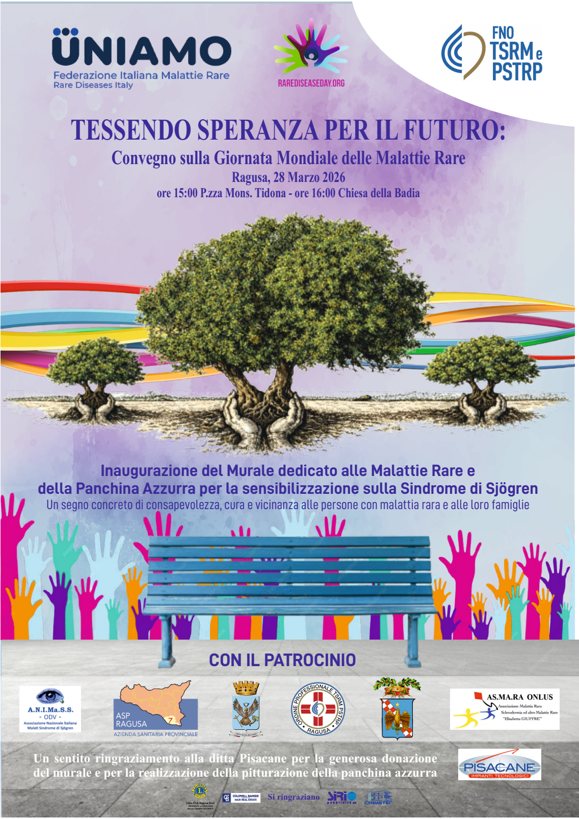 Ragusa, 24 marzo 2026 – In occasione della Giornata Mondiale delle Malattie Rare, si terrà sabato 28 marzo 2026 il convegno “Tessendo Speranza per il Futuro”, promosso dal Gruppo di Lavoro sulle Malattie Rare della Federazione Nazionale dei Tecnici Sanitari di Radiologia Medica e delle Professioni Sanitarie Tecniche, della Riabilitazione e della Prevenzione, in collaborazione con la Federazione Nazionale Malattie Rare UNIAMO.