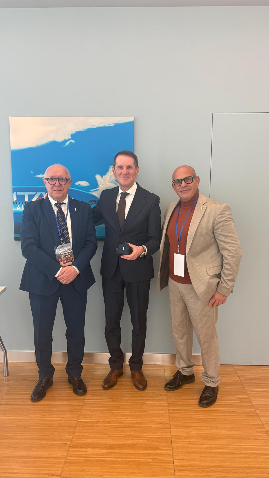 Al Presidente di ITA AIRWAYS Sandro Pappalardo , il Consorzio ha conferito il riconoscimento “Barretta d’Argento” con la motivazione : “Per avere favorito la conoscenza del Cioccolato di Modica Igp, primo ed unico cioccolato europeo a Indicazione Geografica e patrimonio culturale e gastronomico italiano, nel mondo”.(foto)