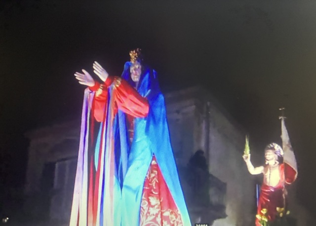 La Madonna Vasa Vasa (edizione serale): il racconto è stato affidato a Salvatore Cannata e Stefania Fiorilla, che hanno accompagnato i telespettatori tra le suggestioni dell’abbraccio serale tra la Vergine e il Cristo Risorto.