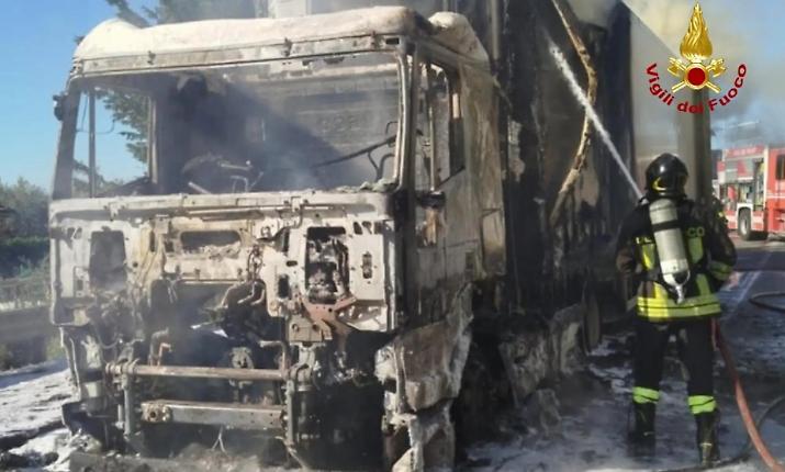 Secondo le prime ricostruzioni, il rogo sarebbe divampato rapidamente dal vano motore del pesante veicolo. L’autista, accortosi tempestivamente del fumo e delle prime lingue di fuoco, ha avuto la prontezza di fermare il mezzo e ad abbandonare l’abitacolo prima che l’incendio si propagasse all’intera cabina e al carico. Fortunatamente, l’uomo è rimasto illeso, anche se visibilmente scosso.