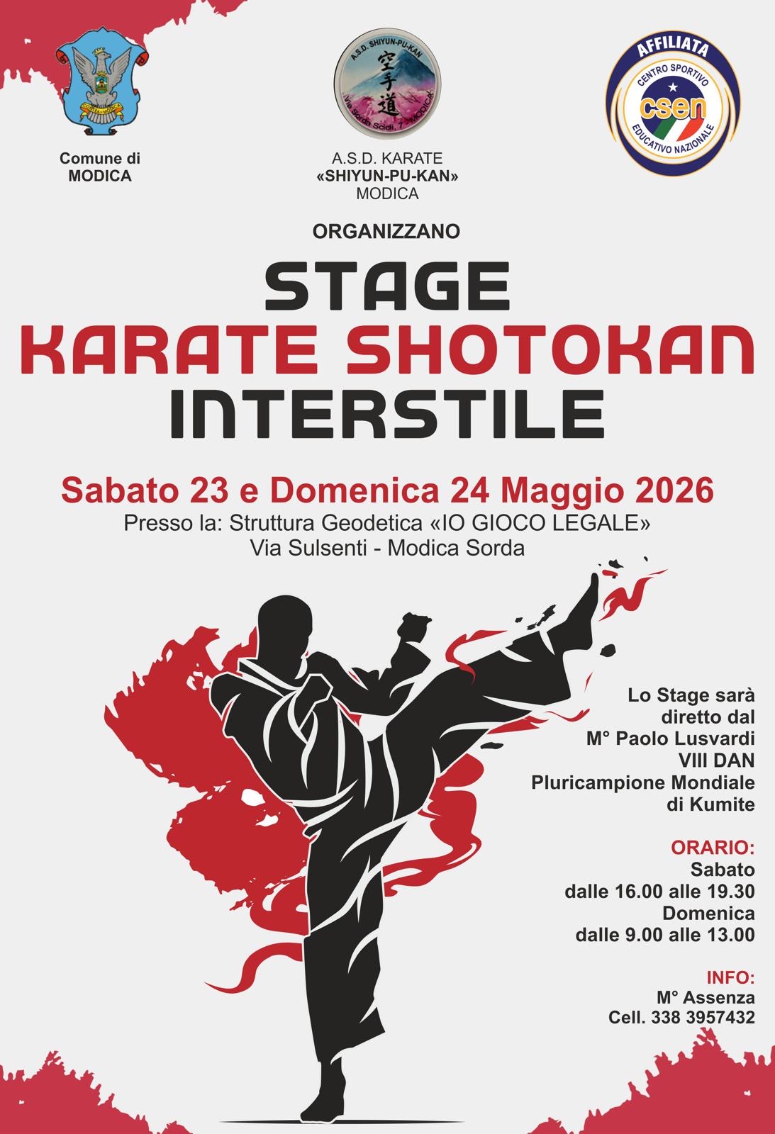 MODICA, 17 Aprile 2026 – Un appuntamento imperdibile per tutti gli amanti delle arti marziali e dello sport d’eccellenza. Il prossimo 23 e 24 maggio 2026, Modica ospiterà un evento di caratura internazionale: lo Stage di Karate Shotokan Interstile, che vedrà come protagonista d’eccezione il Maestro Paolo Lusvardi.