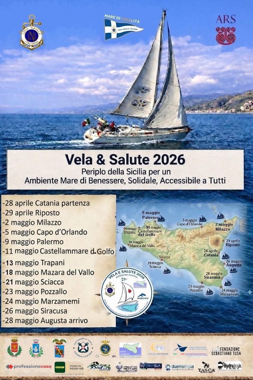 CATANIA, 24 Aprile 2026 – Ѐ tutto pronto per la IV edizione di “Vela & Salute” la navigazione a vela, promossa da Lega Navale Italiana nell’ambito dell’iniziativa nazionale “Mare di legalità”, che partirà il 28 aprile dal porto di Catania e per un mese si snoderà lungo le coste della Sicilia, per diffondere messaggi d’inclusione sociale, legalità, tutela della salute e sostenibilità ambientale.